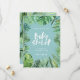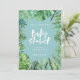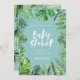 Clássicos tropicais modernos de folhagem de palmeiras, convites para bebês. Texto do script de efeito pintado à mão. Parte de uma coleção de tendência de verão. A cor de fundo pode ser alterada.