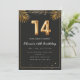 Palma tropical de Ouro de luxo deixa Convite de aniversário 14. Convite de aniversário 14 adorável em balões pretos e dourados design com folhas de palma tropical ouro. Personalize com os detalhes da sua festa e envie um e-mail para a família e amigos convidando-os a comemorar o aniversário de 14 com estilo!