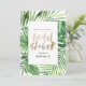 Convidado para chá de panela de folhagem de cor de palma tropical moderno. Texto do script de efeito ouro pintado à mão. Parte de uma coleção de tendência de verão. A cor de fundo pode ser alterada.