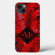 Frentes de palma vermelho tropical em preto, esta capa de telefone - PARA QUALQUER ESTILO OU NÚMERO DE DISPOSITIVO - apresenta o seu monograma em letra chic. Crie ou dê como presente. CORRESPONDENDO a itens na nossa loja.