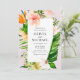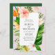 moderno tema do casamento verde-aquarela com folhas de palma e floral rosa. O texto e as cores podem ser editados.