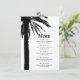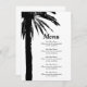 Modelo do cardápio de casamento da palmeira tropical. Modelo para festa de casamento elegante na praia. Linda palma preta deixa silhueta com tipografia na moda. Modelos personalizáveis para casais que se casam. Parte de um belo conjunto de correspondência.