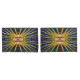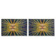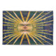 O design de explosão de sol original de ZoeSPEAK neste conjunto de malas foi feito a partir da fotografia original de Zoe de frentes de palmetto de serra. As frentes amarelas esverdeadas se propagam contra um fundo azul esverdeado escuro, formando um padrão parecido com tecido tapeçaria.