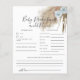 Tema popular do capim do chá de fraldas, predições de bebês e cartões de aconselhamento com uma ilustração de cor d'água do botânico do deserto com flores azuis. Os textos são editáveis. Um jogo perfeito para jogar durante o chá e definitivamente será um excelente! O cartão aos hóspedes para predizer como o bebê se pareceria.
