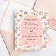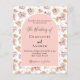 Um quadro de arco sobre um padrão de grama pampas e flores cor-de-rosa e uma cruz ouro. Personalize e adicione seus nomes e detalhes. 1 folha = 1 convite impresso de borda a borda.
