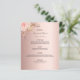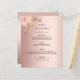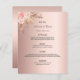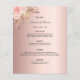 Um cartão de cardápio do estilo boêmico elegante. Personalize e adicione seus nomes, data e menu de casamento. Um fundo de rosa dourado de tendência falsa metálico. Decorado com florais cor-de-rosa pincelado e grama pampas. Fundo: fundo rosa dourado colorido.