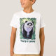 Camiseta Iluminada Cabeça e Cauda de Urso Panda de Halloween apresenta um Panda Gigante fofo e assustador na frente e nas costas com as palavras na frente, Esta É minha fantasia e nas costas sob a parte traseira do grande urso preto e branco estão as palavras, Doce ou Travessura! Por trás do ursinho panda brincalhão há uma floresta de bambu verde exuberante e texturizada, com um céu verde pálido texturizado com uma borda divertida e ondulada verde escuro pintada por nossa talentosa artista infantil, Traci Van Wagoner. Ótimo para qualquer um que ama Halloween, ursos pandas, animais selvagens e se vestir casualmente. Tenha um Halloween selvagem!