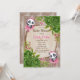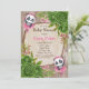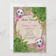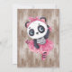 Vocês vão adorar estas texturas de madeira de prancha marrom com um toco de árvore e um ursinho panda fofo vestido com um tutu cor-de-rosa e calçados balés com rosas brilhantes verdes. Excelente para um chá de fraldas!