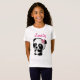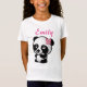 A panda com uma camisa cor-de-rosa do arco caracteriza uma panda ilustrada bonito que veste um arco cor-de-rosa perto de sua orelha. É a camisa perfeita para qualquer um que ama pandas! Personalize o texto como desejado. Faz um grande presente para aniversários, Natal, ocasiões especiais e outros feriados!