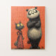 Um duo peculiar para fazer você sorrir: um panda de olhos largos fica ao lado de um gato preto em um vestido vermelho fluente, colocado contra um pano de fundo laranja texturizado. Expressões lúdicas e detalhes parecidos tornam este quebra-cabeça divertido de se reunir e encantador para mostrar — excelente para famílias, crianças e amantes de os animais. Escolha o tamanho e a contagem de peças preferidos no Zazzle.