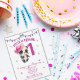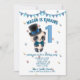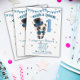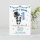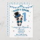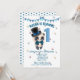 Personalize facilmente este convite de aniversário com o seu nome, ano de aniversário e todas as outras informações pertinentes! Ele apresenta nosso adorável bebê panda vestindo um chapéu de cima, e uma gravata inteligente de arco azul. A parte traseira apresenta bolinhas.