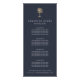 O design de placa de rack elegante mostra seus serviços ou a lista de preços de salão de forma elegante. Design apresenta uma inscrição branca clássica sobre um fundo azul marinho adornado com uma ilustração de palmeira de folha de ouro tropical. Inclui quatro títulos personalizáveis e campos de texto do corpo, e espaço para as informações de contato da sua empresa na parte inferior. Para ajustar o layout, digite seu texto e use a função Personalizar para alterar o posicionamento e os tamanhos de fonte.