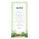O cardápio de casamento para um casamento de primavera é lindamente desenhado com um toque de estilo de vintage. O cartão mostra uma combinação de belos verdes e listras, criando um olhar encantador e elegante. A parte inferior da carta apresenta um pedaço de madeira adornado com um verde delicado, acrescentando um toque natural e refrescante. Para melhorar a design global, uma fronteira de faixas verdes pálidas rodeia o cartão, dando-lhe um apelo sutil e sofisticado. Este cardápio é perfeito para casais que querem incorporar uma estética clássica, mas nova, em suas comemorações de casamento.