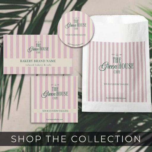 Panfleto Chic Pink Stripes Green Bakery Logo QR Price