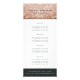 O rosa de cobre elegante e o design de placa de rack preto mostra seus serviços, sua lista de preços ou informações comerciais de forma excelente. O design apresenta uma borda de luzes de pincel de pincel ouro rosa de cobre na parte superior, com seu nome e/ou nome comercial sobrepostos. Inclui quatro cabeçalhos personalizáveis e campos de texto corporal, e espaço para as informações de contato da sua empresa na parte inferior, com carvão fora do preto. Para ajustar o layout, digite seu texto e use a função Personalizar para alterar o posicionamento e os tamanhos de fonte.