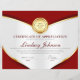 Recurso de Prêmio de Certificado de Apreciação Profissional Tons de Gradiente Vermelho e Dourado, Medalha e Estrelas Vermelhas. Personalize ao seu gosto.