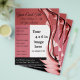 Voo de negócios projetado para eventos de moda, beleza ou comida e vinho. Este folheto também pode ser usado para vendas de roupas e acessórios, eventos do dia dos namorados ou outros fins. Adicione sua própria imagem personalizada que se encaixará perfeitamente atrás da fita. Projetado com três linhas de título ou cabeçalho, oito espaços para informações do evento e mais informações, como site e localização ou endereço do evento. Simplesmente exclua o que não se adequa aos seus objetivos. O verso foi deixado em branco e pode ser usado para mais texto ou imagens, se desejar. Este design também está disponível em um pôster e cartão de visita correspondente através da southwindcreative no Zazzle.