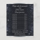 Panfleto de Lista Elegante Preto com Brilho Prata. Um fundo preto chique, decorado com brilho de prata falso que cintila. Personalize adicionando nomes e detalhes.