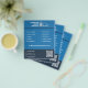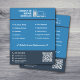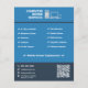 Um panfleto em tons de azul para uma empresa de serviços de reparo de computadores ou atividades como técnico de TI, suporte de hardware e software, atualizações, manutenção e mais, seja na loja ou no local. Inclui uma ilustração com um computador de mesa, um laptop e um telefone celular, além de um código QR, informações de contato completas decoradas com ícones e uma lista de serviços!