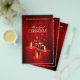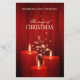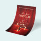 Modelo de folheto de feriado personalizável para eventos de Natal, concertos, coral ou cantigas de Natal com cortinas de veludo vermelho, velas vermelhas de Natal e brilho de estrela mágica.