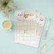 O Baby Bingo é um jogo divertido e interativo perfeito para qualquer chá de fraldas temático de ursos de pelúcia. Cada convidado recebe um cartão de bingo para preencher com presentes que você acha que serão abertos. À medida que a futura mãe abre os seus presentes, os convidados marcam os itens correspondentes no seu cartão bingo. O primeiro convidado a marcar todos os itens seguidos e gritar "bingo" ganha o jogo! Esta é uma forma excelente de envolver todos no processo de abertura de presentes e, ao mesmo tempo, adicionar alguns entusiasmos à festa.