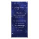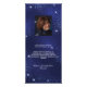 Programa de festa de aniversário. Personalize e adicione um nome, idade e programa. Um fundo azul marinho, decorado com poeira falsa brilhante. A cor azul está aberta. Letras brancas coloridas. Adicione uma foto da aniversariante, fatos e nomes divertidos.