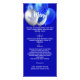 Programa de festa de aniversário e menu. Personalize e adicione um nome, idade e programa. Um fundo azul real. Letras brancas coloridas. Voltar: adicione o menu de jantar de celebração.
