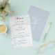Bem-vindos ao perfeito casamento azul claro e claro dos seus sonhos nas cores vibrantes do primavera! O nosso elegante e pensado cardápio de casamento fará com que você e seus hóspedes se sintam com realeza. Nossos lindos menus estão todos inchados em tons azuis claros e estão certos de adicionar um pouco de classe e sofisticação ao seu dia especial.