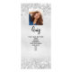 programa de festa de aniversário na frente e um teste, jogo atrás. Personalize e adicione um nome, idade, data, programa no pront e um teste atrás. Um fundo falso, de aspecto prateado, decorado com faíscas de confete prateado. Letras pretas coloridas. Dica: Se tiver muito texto, pode eliminar a fotografia e ajustar o texto.
