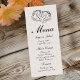 Celebre o amor, o riso e uma bela refeição com este cardápio de casamento com o tema dos cavalos — perfeito para comemorações do Ocidente rústico! Apresentando dois cavalos graciosos em uma design, esta peça traz encanto romântico para seu casamento de fazenda, celeiro ou inspirado no equestre. Com uma mistura de estilo country e toques elegantes, é ideal para o outono ou eventos de verão. O pano de fundo do creme de marfim macio e detalhes refinados fazem dele um extraordinário acréscimo à sua mesa de recepção. Uma maneira alegre e polida de mostrar seu banquete de casamento!