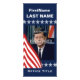 Uma placa de rack patriótica, vermelha, branca e azul.