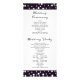 Montanhas roxas e cerimônia de coníferas e programa de casamento de festas. Um elegante design de casamento que apresenta uma cordilheira através de coníferas e seus nomes em estilo manuscrito. A parte traseira inclui bordas escuras e brancas com bolinhas brancas na parte superior e na parte inferior da placa.