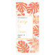 Moderna cerimônia de casamento e programa de festas. Esta design mostra folhas de Split Leaf Philodendron (Monstera deliciosa) ou de Queijo Suíço e folhas de palma em coral vivo com contorno de ouro. Um quadro branco com contorno dourado inclui seu texto. O verso exibe um padrão de bolinhas em ouro e branco.