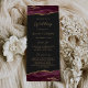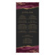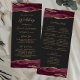 Este elegante e moderno programa de casamento mostra borgundy agate bordas aparadas com dourado falso brilho. O texto aparece na caligrafia na moda dourada e sans serif fonts em um fundo escuro.