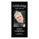 Este texto branco simples e moderno sobre o programa de cerimônia do memorial fotográfico negro é uma bela maneira de lembrar um ente querido durante a celebração do serviço de vida.