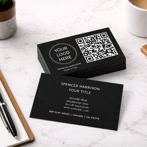 Panfleto QR Code Business Logo Modern Professional Black