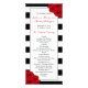 A coleção de luxo moderna de chic apresenta um histórico clássico de listras brancas e pretas, acentuado com belas rosas vermelhas de rubi e uma falso moldura de folha de prata. Esses cartões de programa são fáceis de personalizar e serão a ordem de serviço perfeita para qualquer casamento, chá de panela, festa de aniversário, celebração de noivados ou qualquer outra ocasião especial.