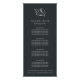 O design de placa de rack elegante mostra seus serviços ou a lista de preços de salão de forma elegante. A ilha chic design apresenta uma escrita branca clássica sobre um fundo preto suave, enfeitado com uma ilustração de concha de folha prateada tropical. Inclui quatro títulos personalizáveis e campos de texto do corpo, e espaço para as informações de contato da sua empresa na parte inferior. Para ajustar o layout, digite seu texto e use a função Personalizar para alterar o posicionamento e os tamanhos de fonte.