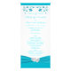 Este cartão romântico de casamento floral branco e turquesa ou azul-lacrimogêneo tem uma imagem de um par de corações unidos sobre uma imagem azul-turquesa que atravessa o fundo do cartão. Há um arco floral de flores e vinhas de turquesa no topo do programa de casamento com texto azul de turquesa sobre fundo branco que tem os nomes da noiva e do noivo, a data do casamento, e todos os detalhes da cerimônia de casamento acima da fita. O dorso é azul-turquesa com flores prateadas sobre os detalhes da festa de casamento em branco. Se você precisar de outros itens correspondentes, envie seu pedido por e-mail para niteowlstudio@gmail.com ou use o recurso de bate-papo Zazzle para entrar em contato.