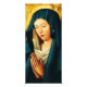 O fundo comum e escuro contrasta com a cabeça radiante da Virgem e com a morada branca que a cobre, e as mãos dela são cuidadosamente fechadas.