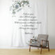 Pano de fundo para casamento com verso personalizável e decoração floral nativa azul.