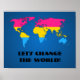 Value Poster with pansexuality rainbow stripes map of world, pansexuality pride design on blue background, Let's Change the World template text, by pinkbrickroad