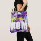 Bonito bolsa de tote com impressão pansy roxo e texto "Mãe Fabulosa".