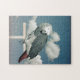 Cinza africana do Congo apodrece em um poço contra um céu azul com nuvens em um quebra-cabeça.