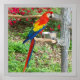 Poster de 11"x11" personalizável com uma fotografia de papagaio vermelho.