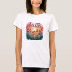 Campos T-Shirt de papoilas no pôr do sol, moldados como cor de água e estilo de tinta alcoólica. A composição inclui a palavra "FAITH" na tipografia rosa-escuro.