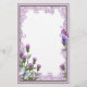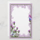 Estes e borboletas num jardim de verão. O caroço magenta é símbolo floral da Escócia. A papelaria tem uma bela borda de espirais e púrpura.