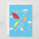 Kites no céu é um convite para Chás de fraldas. Design chá de fraldas de de com três pipas em cores vermelha, amarela e laranja. As pipas estão voando no céu entre nuvens. Adicione seu texto.