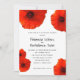 Grande modelo de convite de casamento. O texto preto moderno é impresso em papel branco com uma fronteira de lindas flores vermelhas brilhantes. O padrão de quadrados pretos no verso pode ser removido para mostrar branco plano.