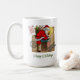 Esta caneca apresenta Papai Noel Na Chaminé. O design está na frente e nos fundos. Há selos que leem "North Pole Express" e "Santas Special Delivery".